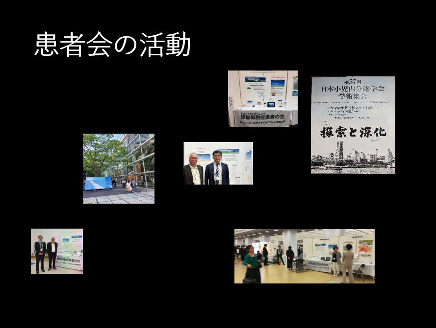 小児・成人の枠を超え希少疾患だからこそ、病気に対する勇気や有効な治療と研究が進むことを、願う気持ちは共通と思っています。これまでの患者会づくりの経緯を発表。